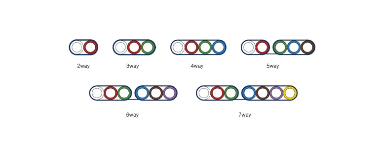 Wide range of number of inner tubes from 2 ways to 7 ways