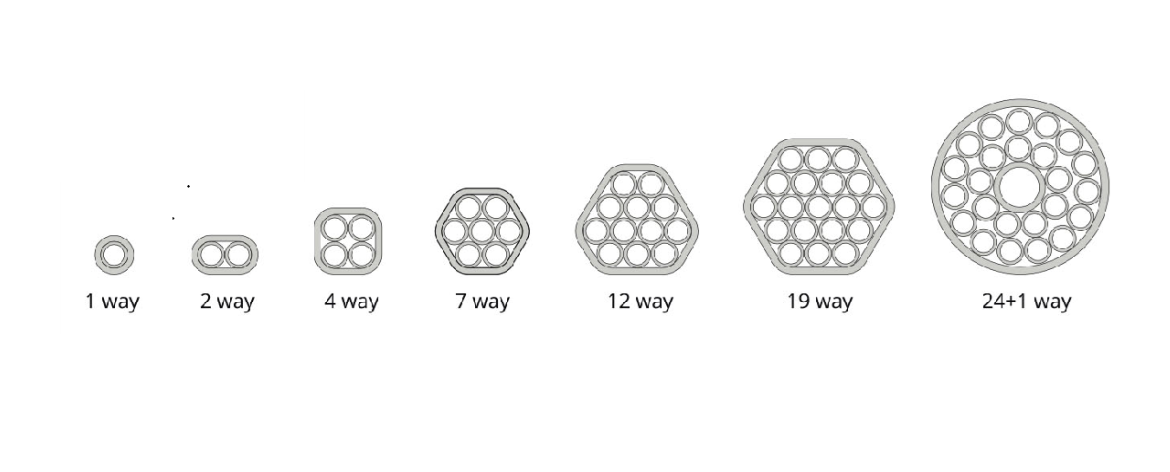 Wide range of number of inner tubes from 1 way to 24+1 way