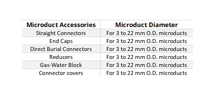 Microduct Accessories is a wide range of microduct fittings for deploying microduct systems and associated accessories, such as simple push-fit action for a secure connection Blown Fibre protected connectors, end caps, reducers and closures. With microduct fittings, it is possible to build a very flexible blown fiber optic network.