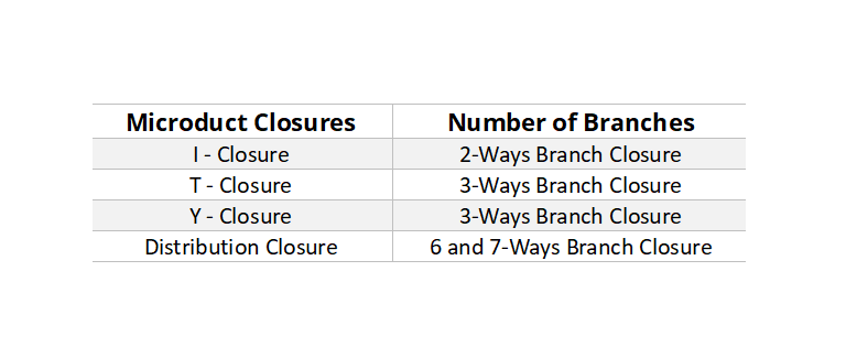 Branch Closure has different types (2, 3, 6 and 7-way types)