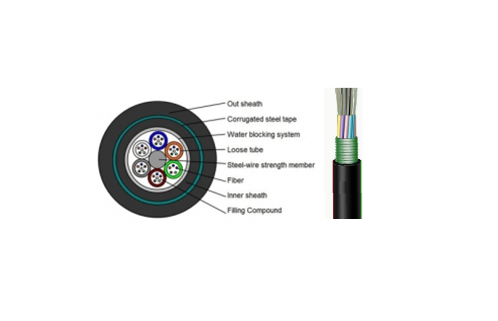 Armored Multi Loose Tube (MLT) fiber optic cables "Stranded Loose Tube" are rugged outdoor cables designed for direct burial, duct, or harsh environments, offering high crush resistance, rodent protection, and water-blocking performance. They are widely used in campus networks where durability and reliability are critical.