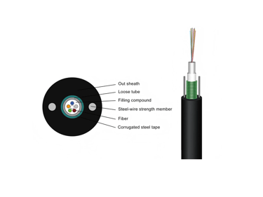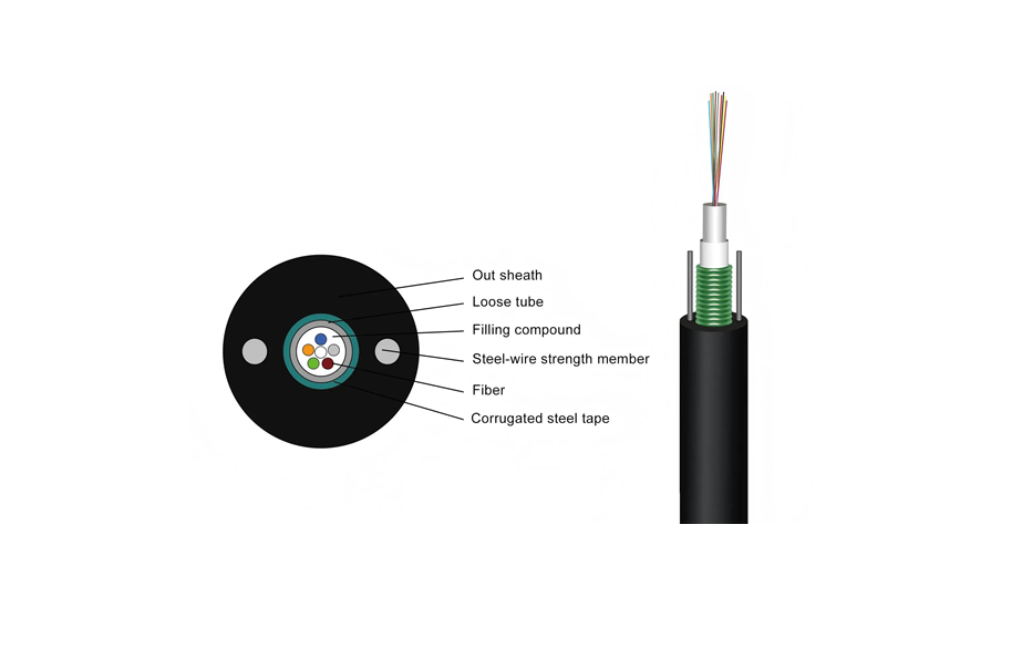 Outdoor fiber optic cables with two parallel steel wires are rugged, high-strength cables designed for long-distance and campus network installations. They combine a central loose tube with steel tape armor and dual steel wire strength members, making them ideal for aerial, duct, and direct-buried applications.