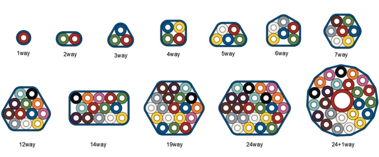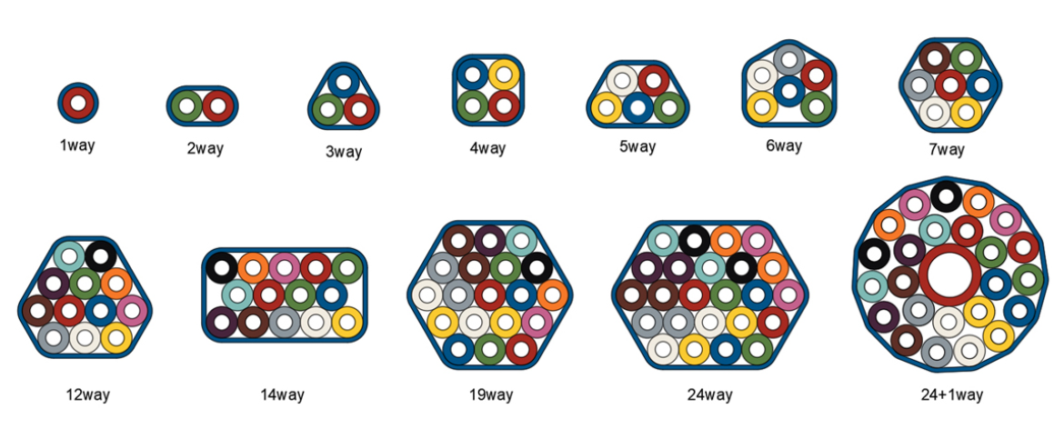 Wide range of number of inner tubes from 1 way to 24+1 way