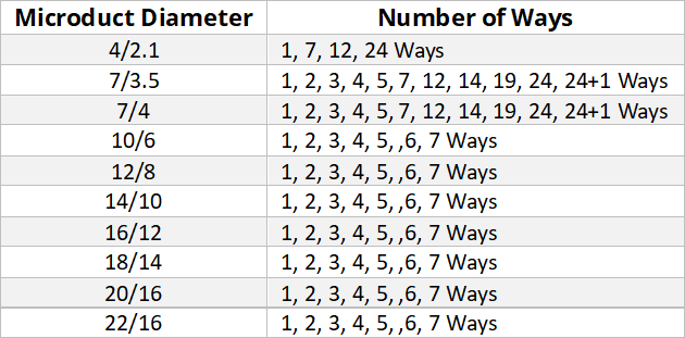 Thick Walled microduct (TWD) are characterized by heavy wall microducts and a relatively thin outer sheath. The microducts themselves are rugged enough to protect the fiber cables inside, assemblies consist of a number of microducts with an inner low friction surface. Typical dimensions for TWD inner tubes diameters are from 2.1 mm up to 22 mm.